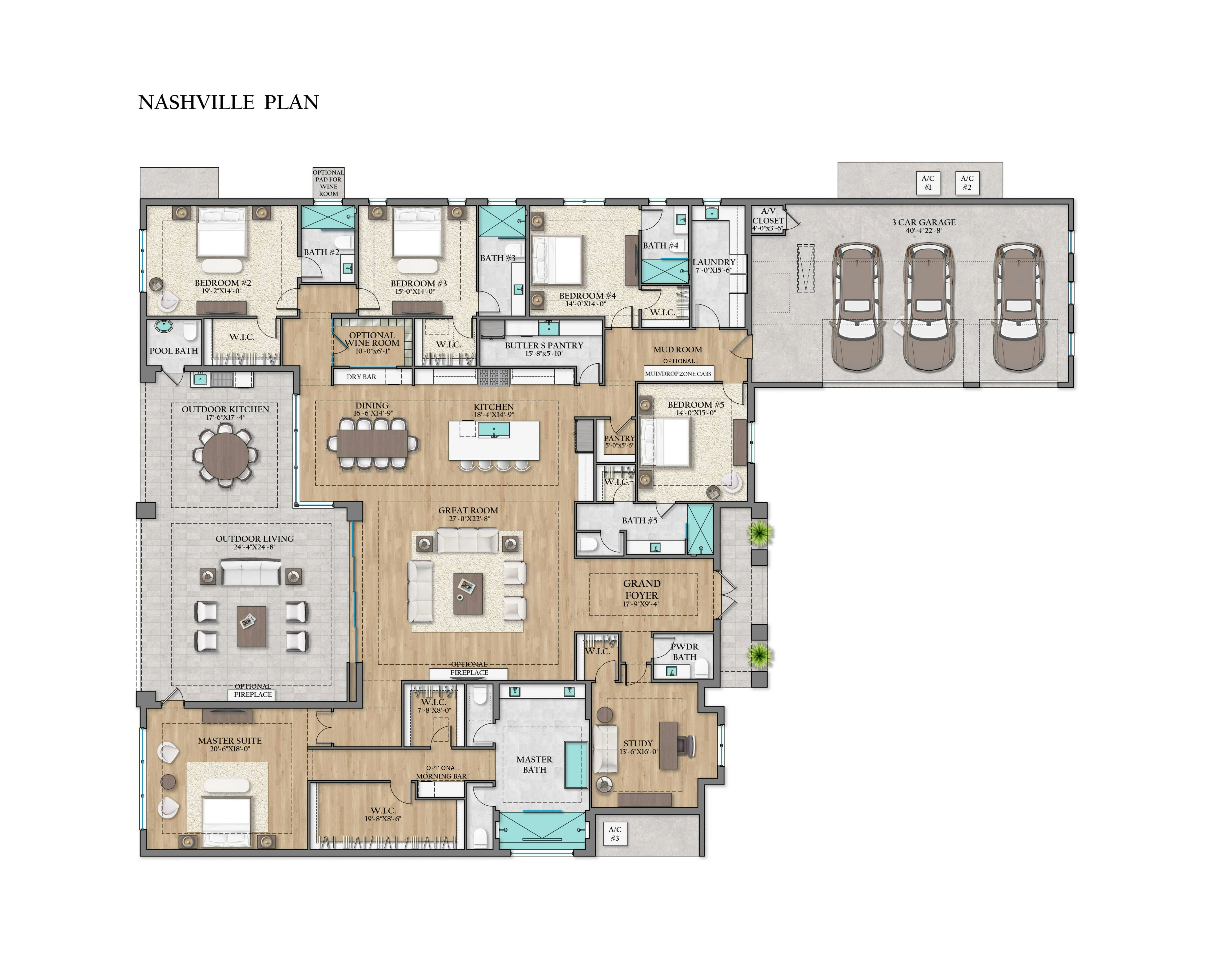5 Full + 1 Half Baths